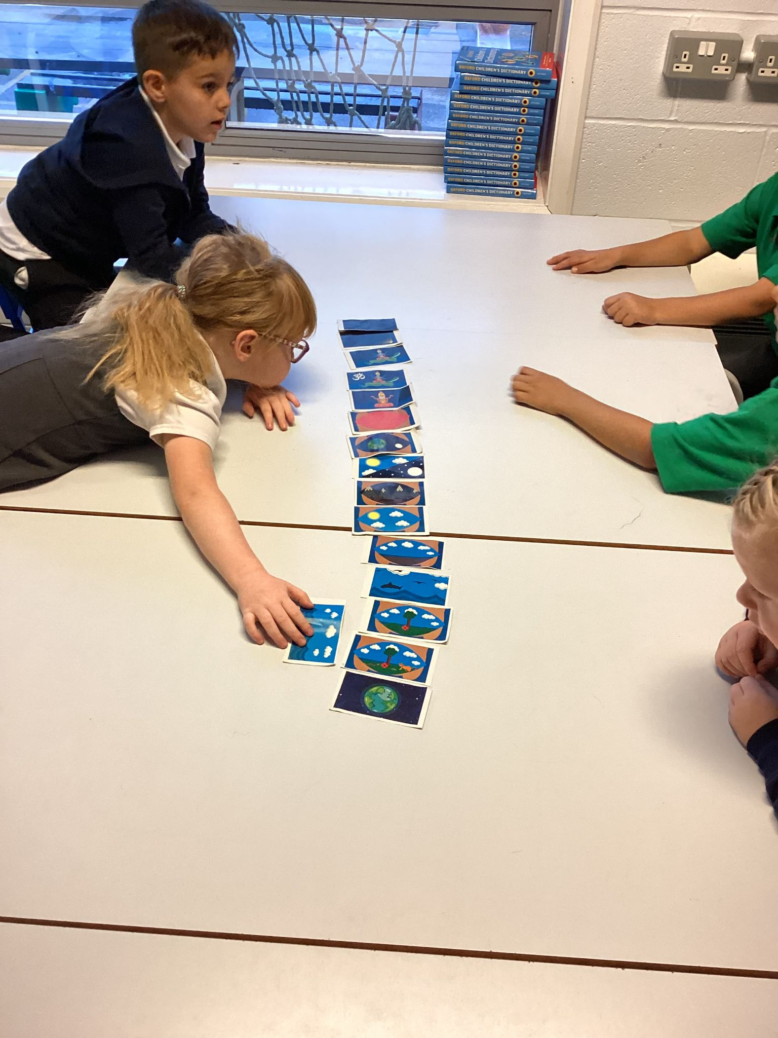 After reading about a murmuration of starlings in their book, Twitch, Year 6 tried their own murmuration in the playground. Peregrine Class have been developing their Typography in Art this half term, creating letters from different shapes. Greenfinches have been learning whole and parts and have been learning lots of different creation stories. Y2 enjoyed spending time making diva lamps out of clay ready for Diwali.